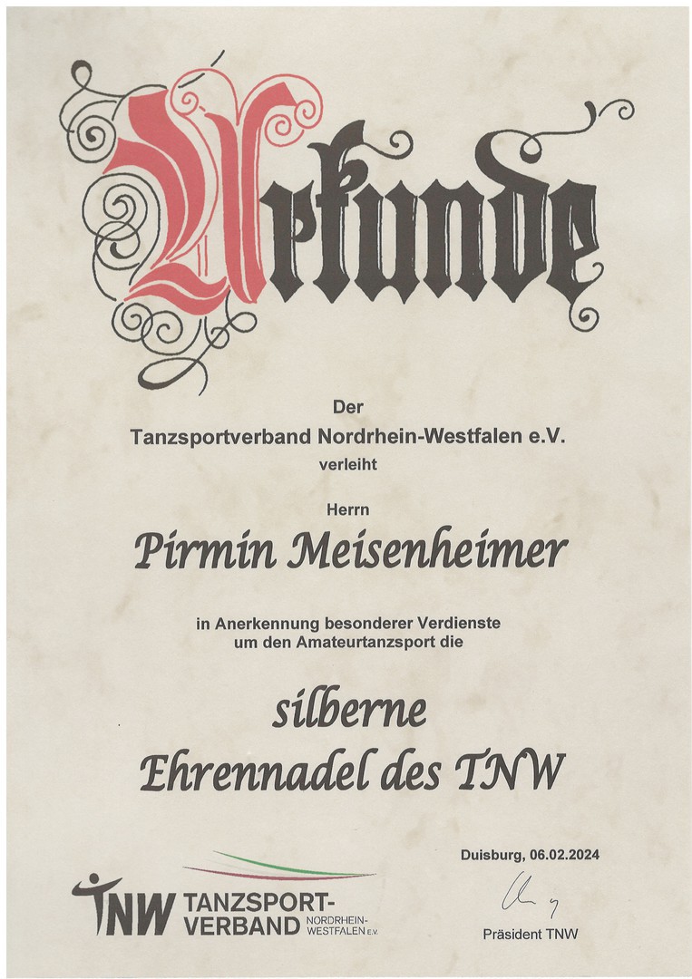 Für Verdienste um den Tanzsport wurden vom TNW ausgezeichnet: